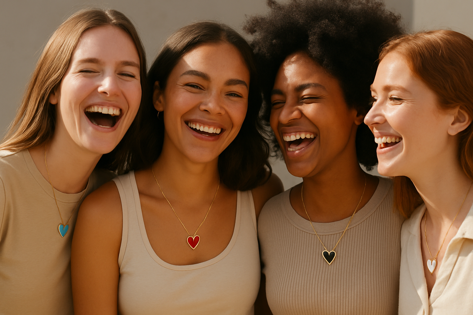 A necklace with a thin golden-colored chain and a heart-shaped pendant. The pendant has a gold outline and is filled with a solid color, which creates a modern and elegant look. This model is available in various colors.