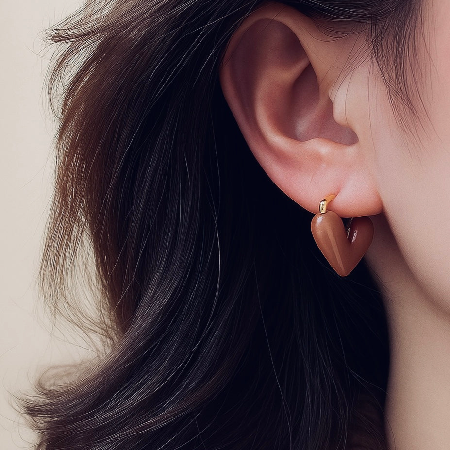 Celebrate the beauty of autumn with these brown heart earrings. Their warm earthy tones capture the cozy charm of fall, making them a perfect accessory for the season’s golden days.